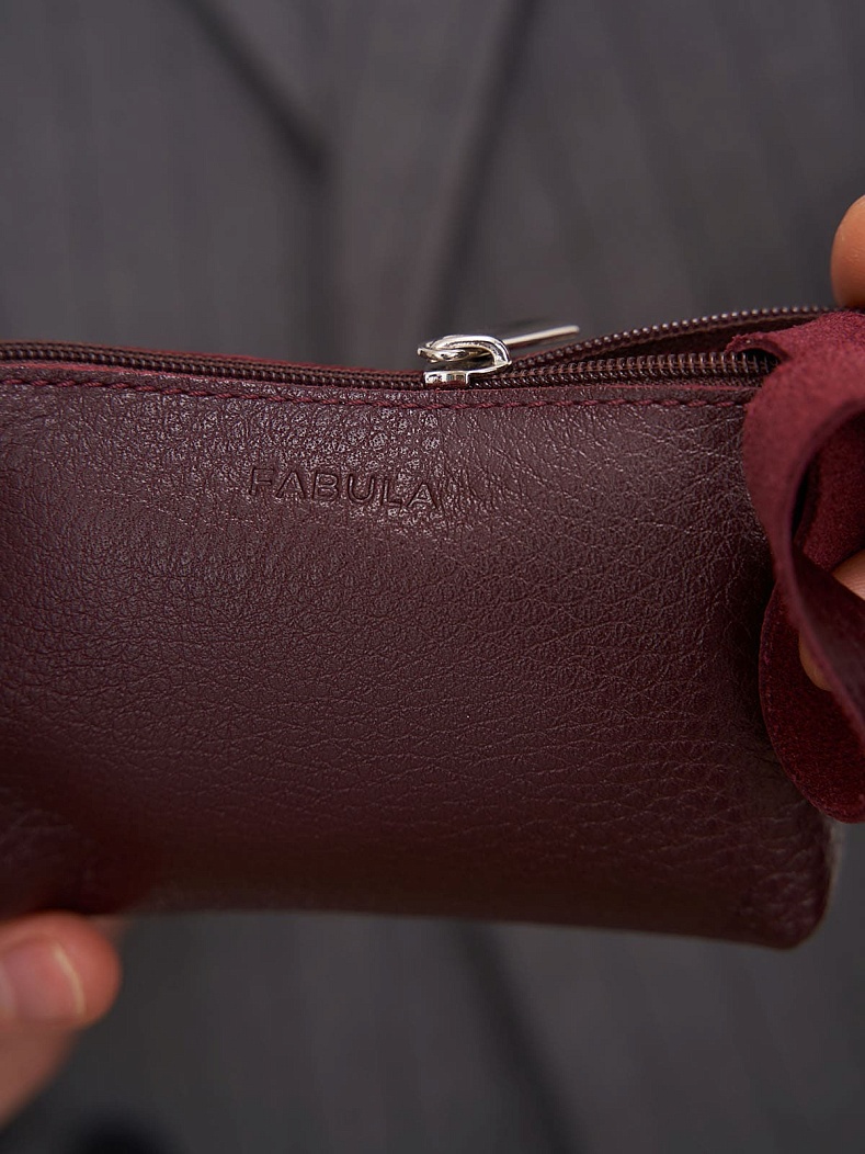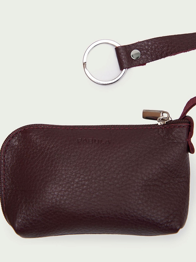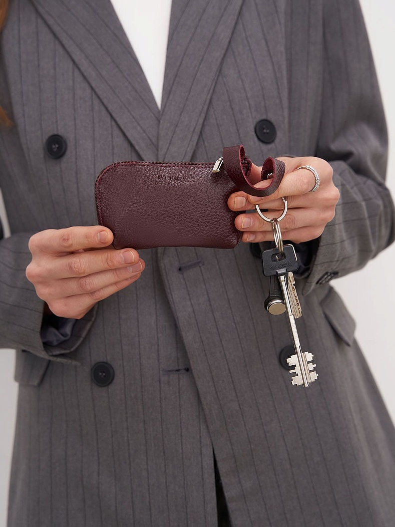 Ключница оригинальной формы выполнена из натуральной кожи. Закрывается на молнию.Внутри О-образное кольцо для ключей на длинном кожаном ремешке. Цвет фурнитуры: никель. Внешний размер: 120x075x030.Упаковка: подарочная коробка.